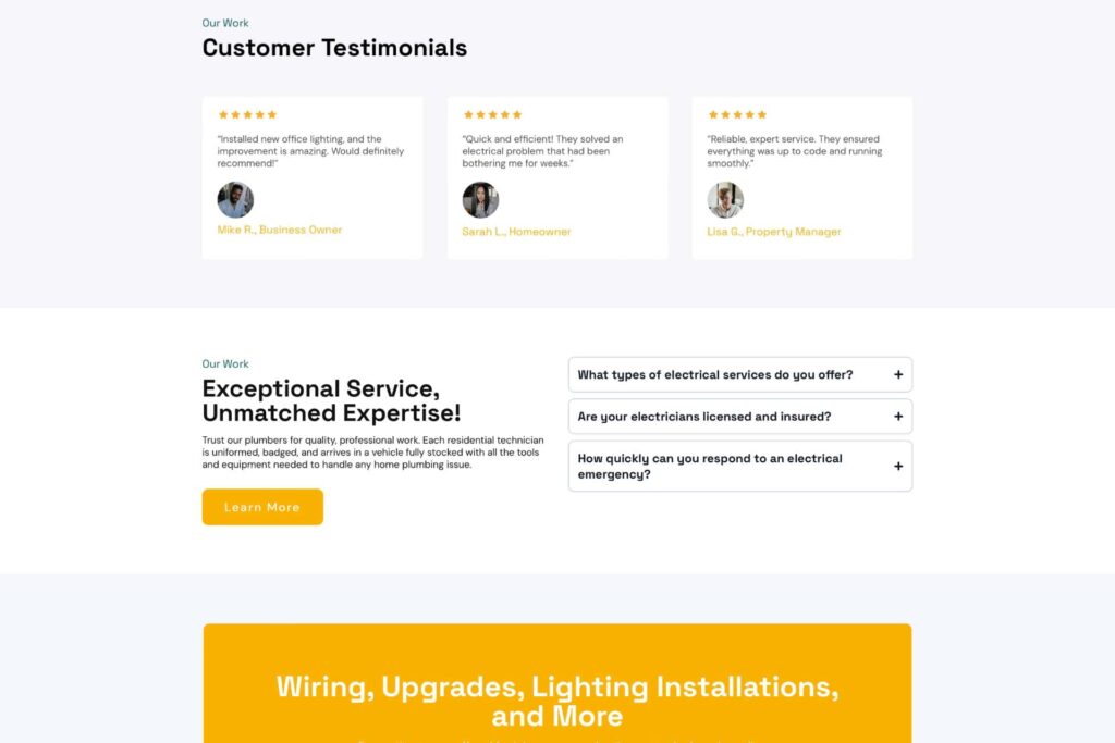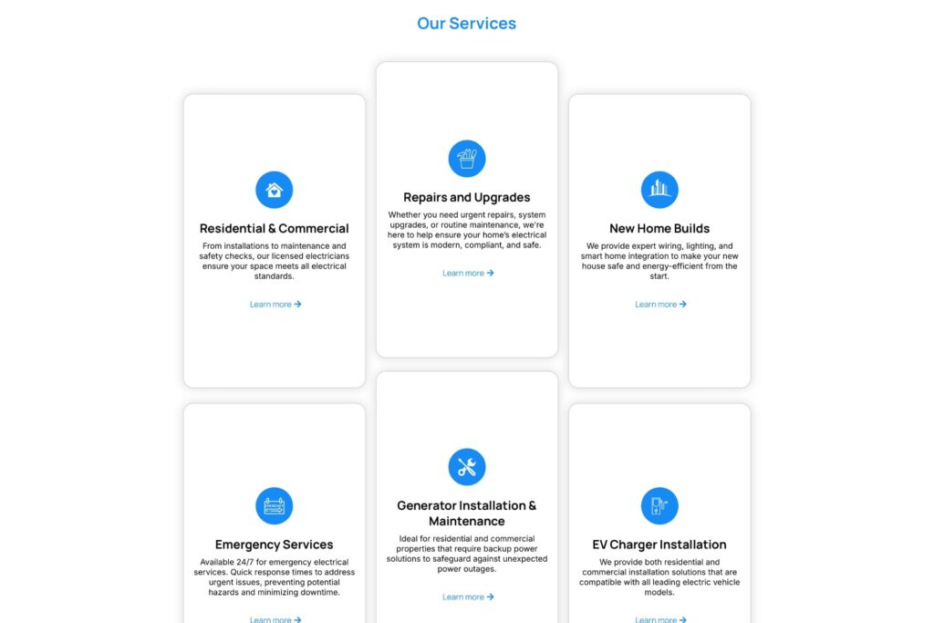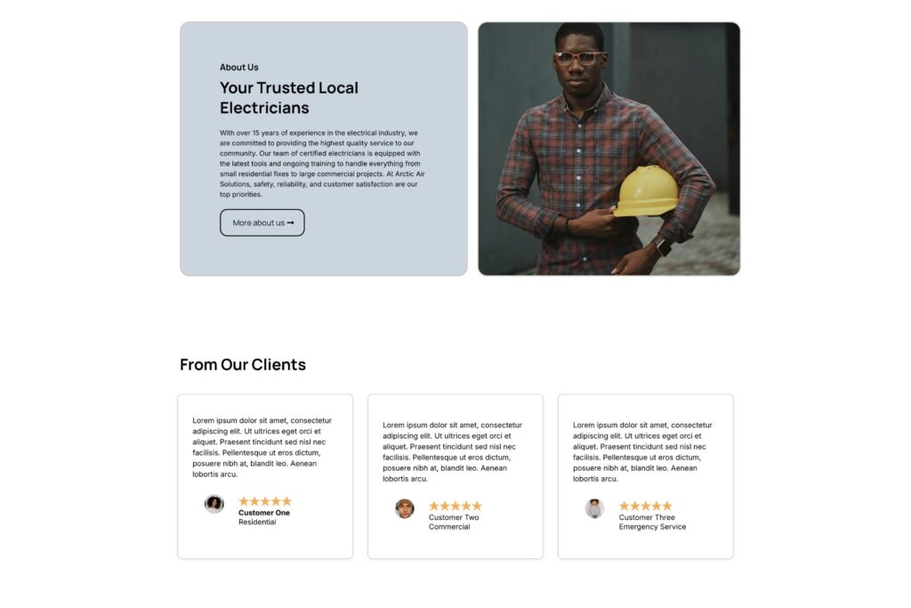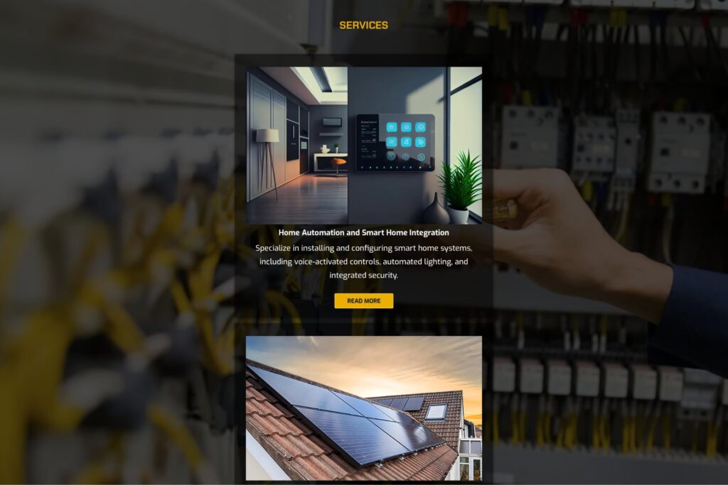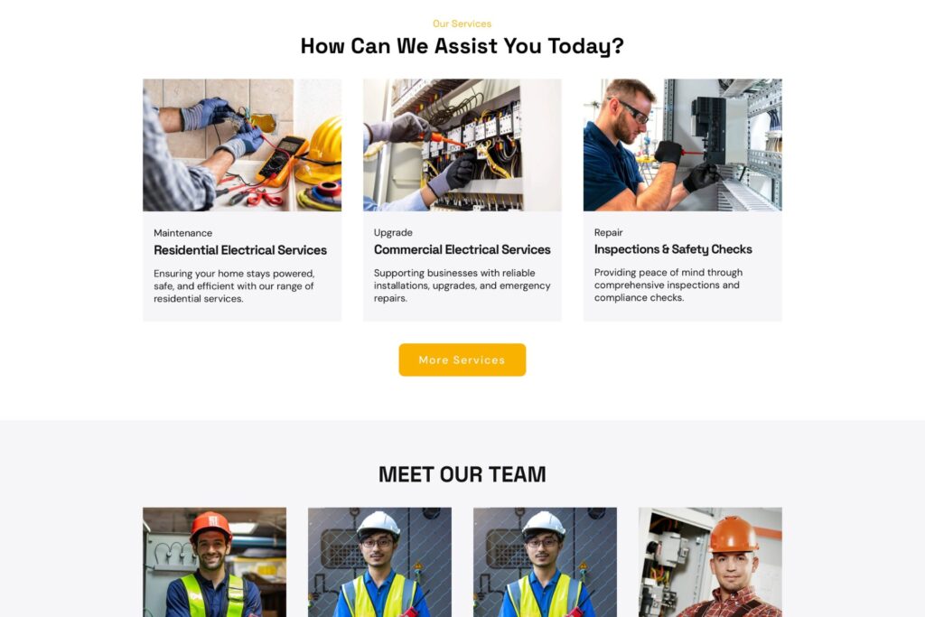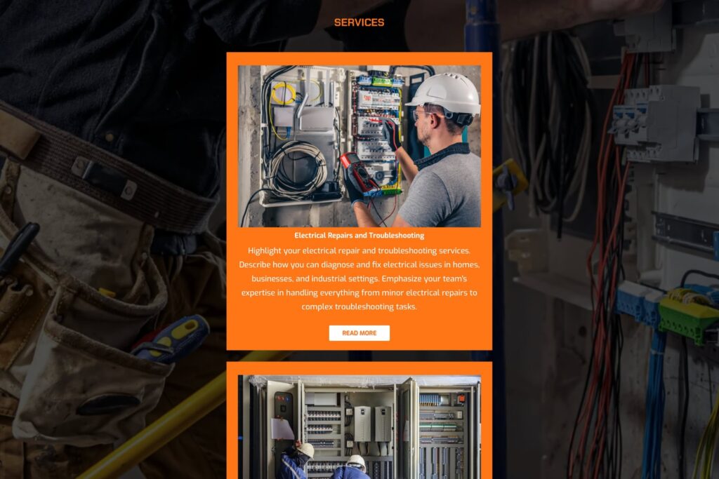 This design keeps things simple, sharp, and trust-focused. It’s ideal for electricians who want a clean, professional site that communicates expertise right away.