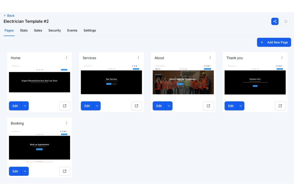 Unlike generic platforms, ours comes pre-loaded with high-converting templates and the tools electricians actually need—like booking forms, service pages, and lead capture built into every site.