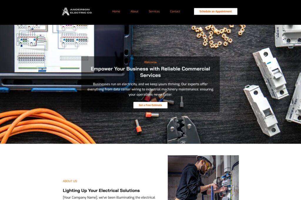 This template is geared toward commercial electricians or companies that want to highlight their technical capability and professionalism. It’s bold, direct, and conversion-focused.