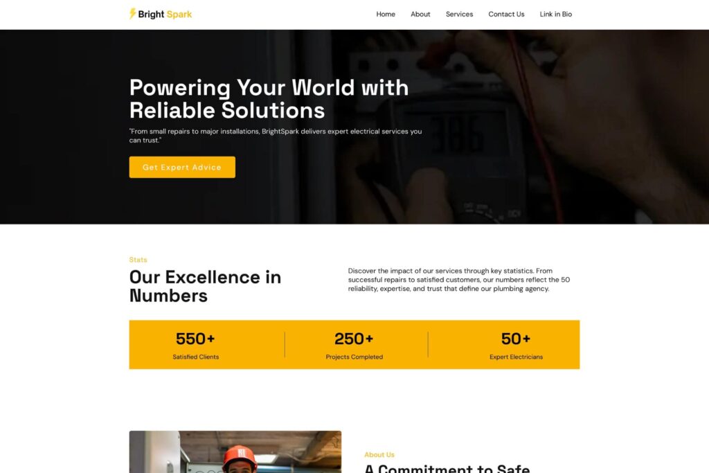 BrightSpark is designed for electricians who want a polished, trustworthy brand feel—perfect for both residential and commercial audiences.