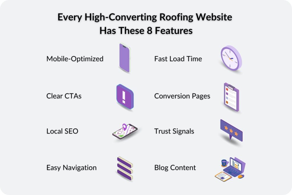 Slow sites kill conversions. If your roofing website takes more than a couple of seconds to load, users will bounce before they even see your photos or read your pitch. Site speed is also a ranking factor for Google, so a sluggish site won’t just frustrate users—it’ll hurt your visibility. Optimize your images, streamline your code, and choose fast, reliable hosting.