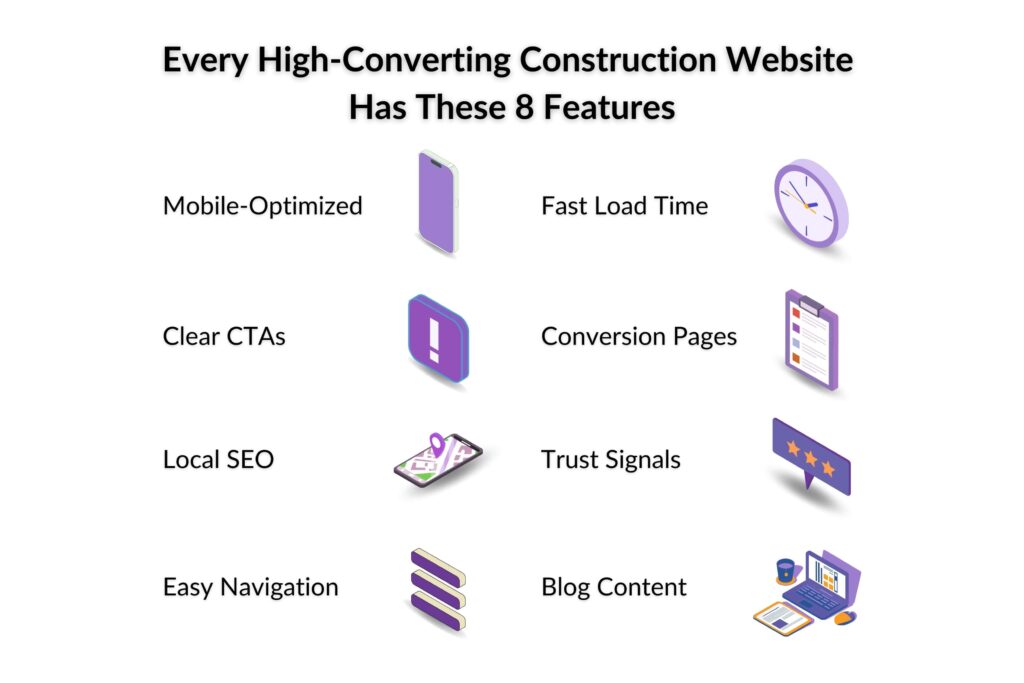 A great construction website isn’t just clean and professional-looking — it’s strategically built to convert visitors into leads.