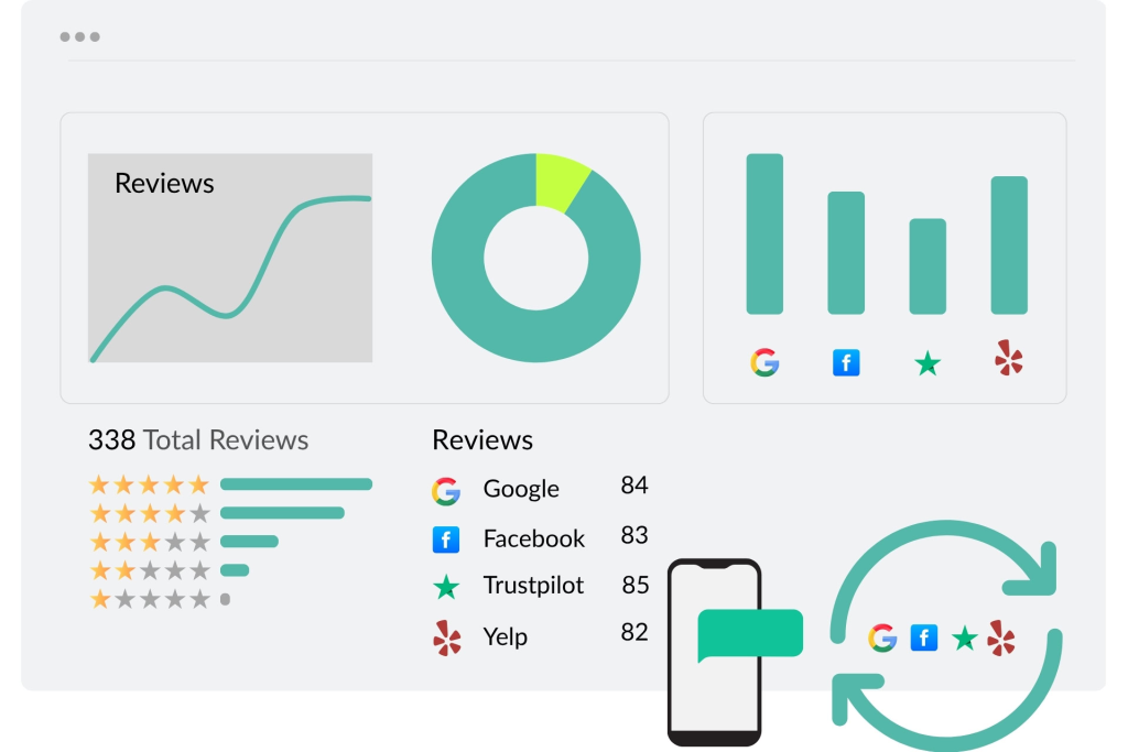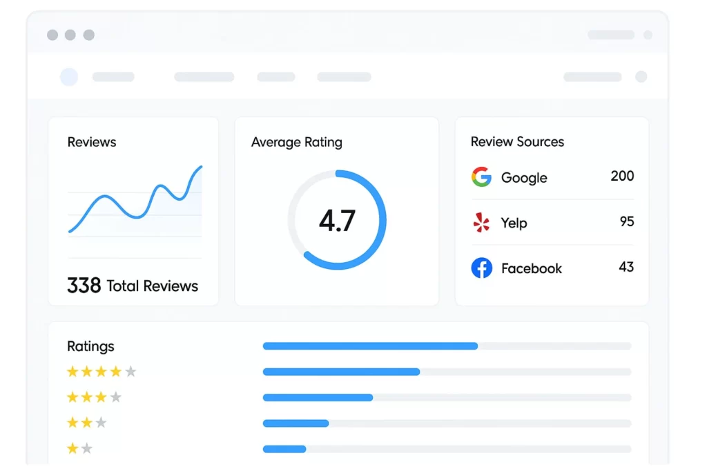 - Monitor reviews from Google, Yelp, Facebook, and 40+ platforms